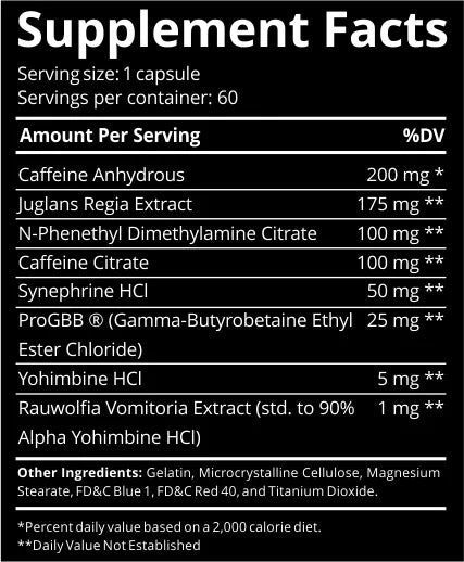 A stacked combination of powerful stimulants and thermogenic compounds: